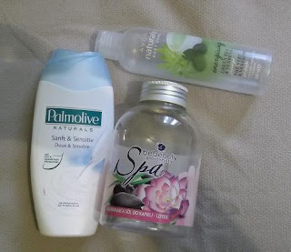 Żel pod prysznic proteiny mleka i ekstrakt z aloesu Palmolive 250 ml - był gęsty kremowy żel, który ładnie się pienił. Dostałam go w prezencie, dlatego nie wiem ile kosztuje. Trochę uczulił moją skórę (poprzez zawartość aloesu w składzie). Zapach delikatny. Nie licząc podrażnienia, jakie u mnie wywołał polecam Wam!